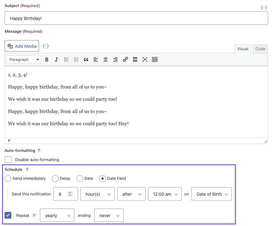 GP Notification Scheduler, as Christopher put it, “powers automated emails at the exact right time” directly from Gravity Forms. Woorise users love scheduling birthday messages, event reminders for webinar registrations, post-purchase follow-ups, and more without the need for a separate email tool. For example, it’s commonly used with their online registration form template.