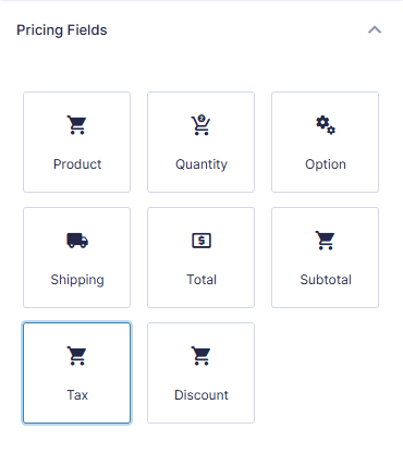 Next, let’s add a Tax field to your form. You will find the Tax field button under the “Pricing Fields” field group on the right side of the form editor.Step 3 Configure the Tax Amount