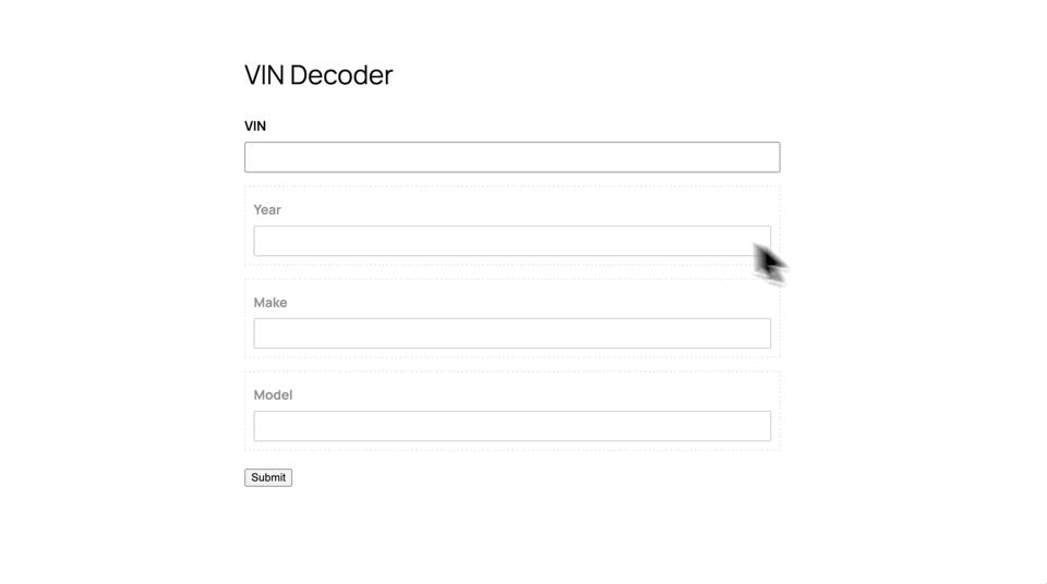 Now test it out. Enter a VIN, and watch the year, make, model auto-populate instantly. ✨