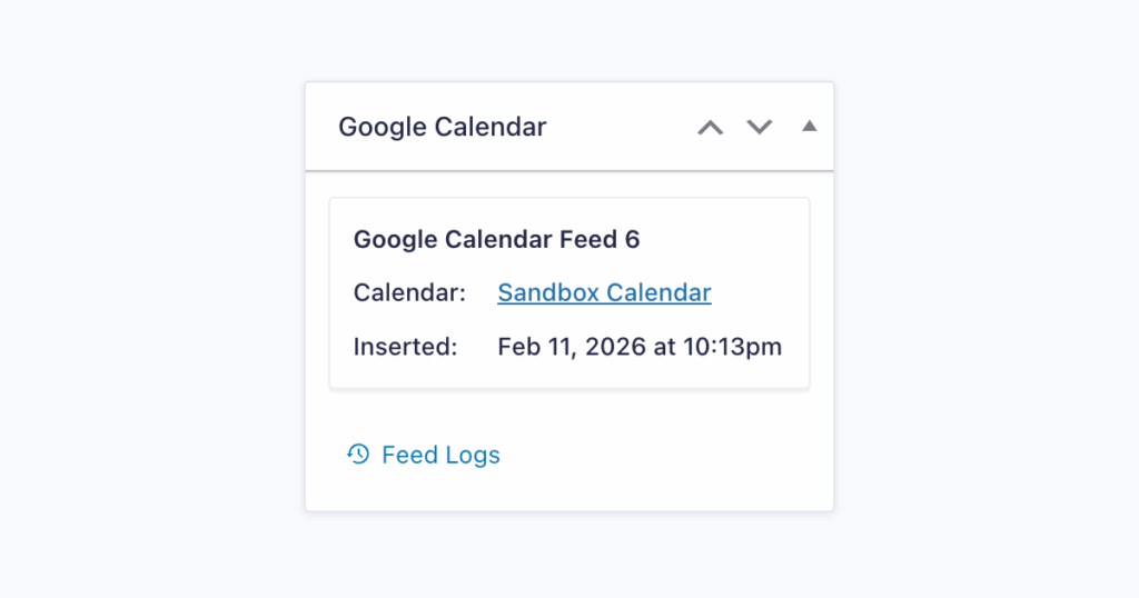 Use the Google Calendars meta box on the Entry Detail view for an overview of which Google Calendar feeds have been processed for the entry and which were not processed.