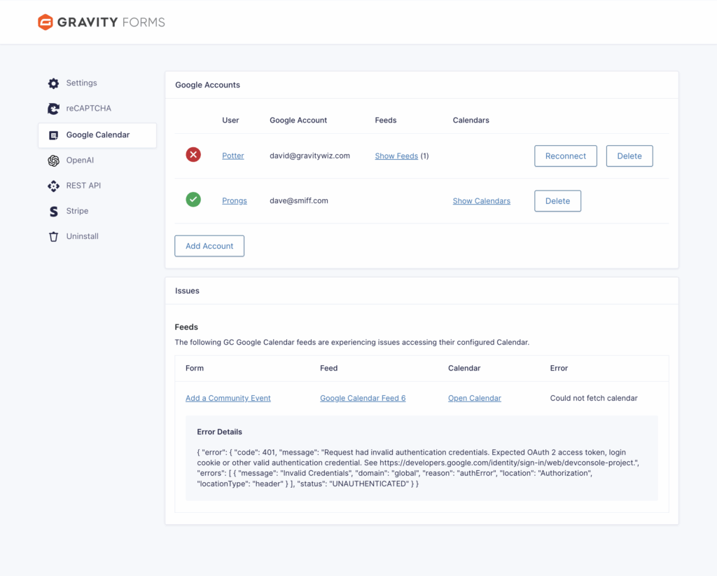 Thankfully, it’s easy to reconnect your Google Account via the Google Accounts plugin setting.