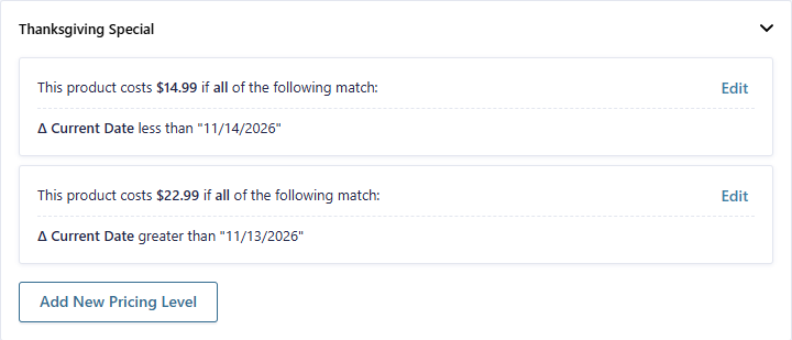 - Create conditional prices, including conditional discounts.