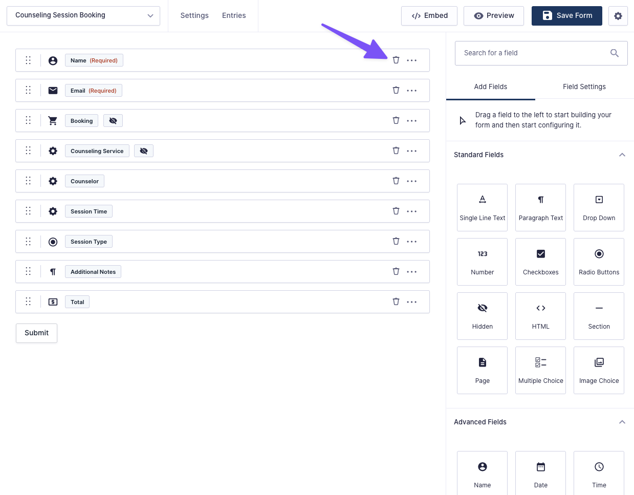 - One-click Field Delete: Adds a one-click delete button (no confirmation) to each field when viewing the form in compact view.