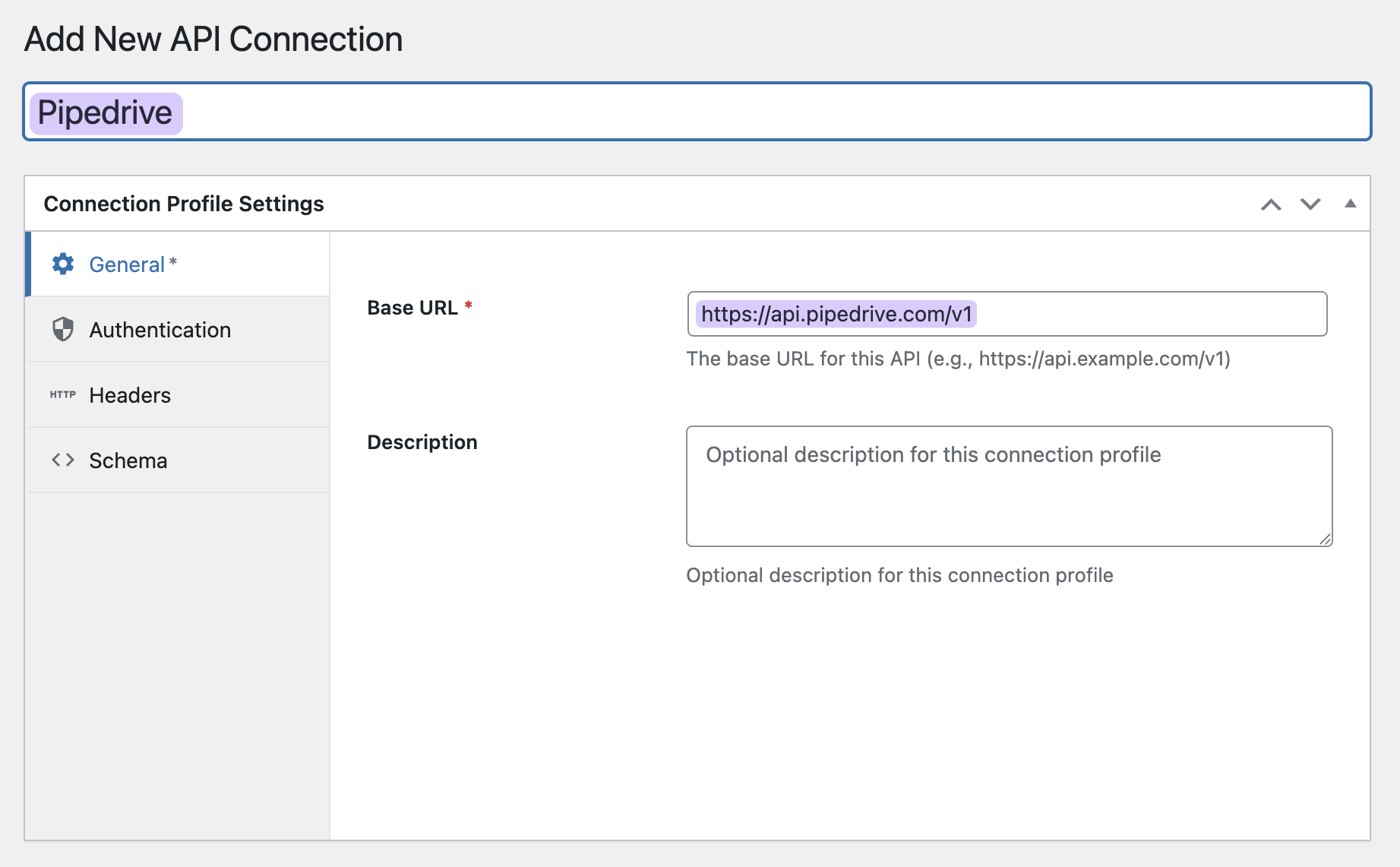 Now we’re building the bridge. This API Connection is your reusable profile that tells WordPress where Pipedrive lives on the web. Set it up once, use it across every form that needs to talk to Pipedrive.
