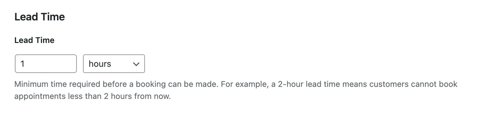 On the scheduling side, new Lead Time controls for Services and Resources let you block last-minute bookings by minutes, hours, or days before a booking starts — with Resource settings taking priority when both are defined.
