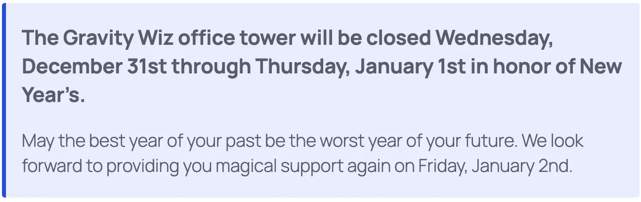 Schedule messages above Gravity Forms for announcements, promos, and closures.