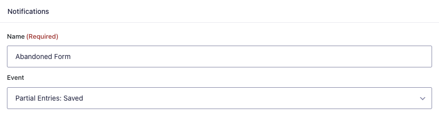 You can choose to use conditional logic to only save a partial entry after certain conditions are met. A good one is requiring the Email field being filled out—otherwise, you won’t have anywhere to send the notification to anyway.