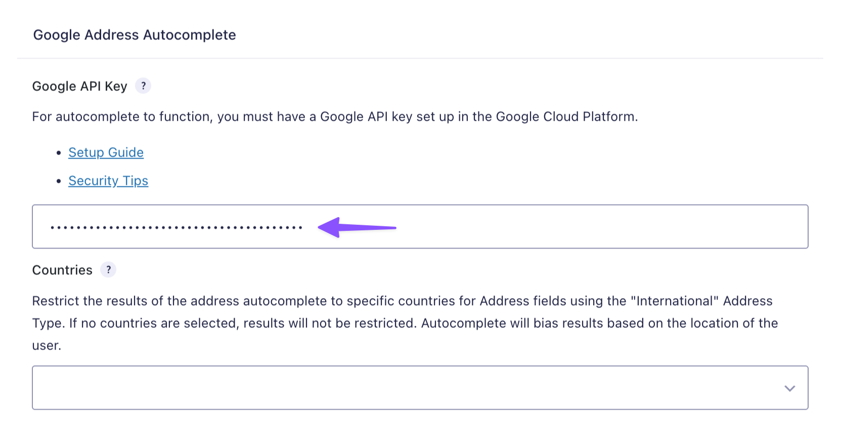 Quick explainer: API (Application Programming Interface) is like a messenger that lets two applications talk to each other. In this case, it’s how Gravity Forms asks Google for address suggestions. If you want to learn more, we’ve got a great guide that explains API in detail.