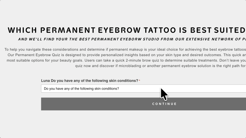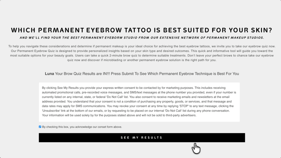 The permanent eyebrow quiz is live at permanenteyebrowquiz.com, catching the mismatch before it ever costs a clinic time or a lead. Patients arrive informed, matched, and ready to say yes.