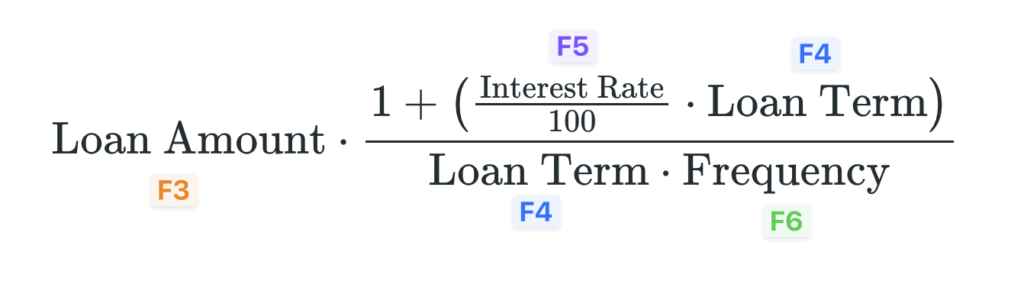 We’ll use the core inputs prepared in Step 1 to calculate the payment amount for each installment in a Number field with calculations enabled.