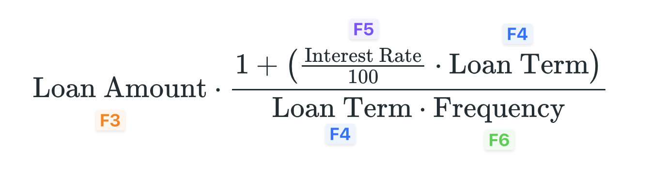 Perfect! This gives our formula everything it needs to calculate a very customizable loan.