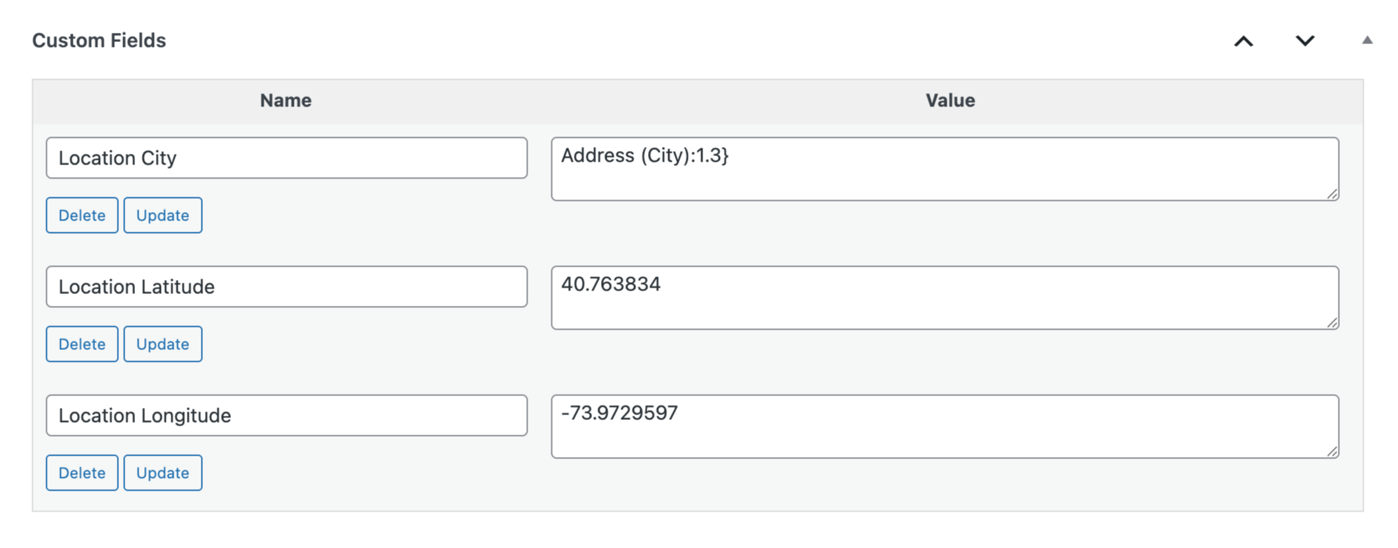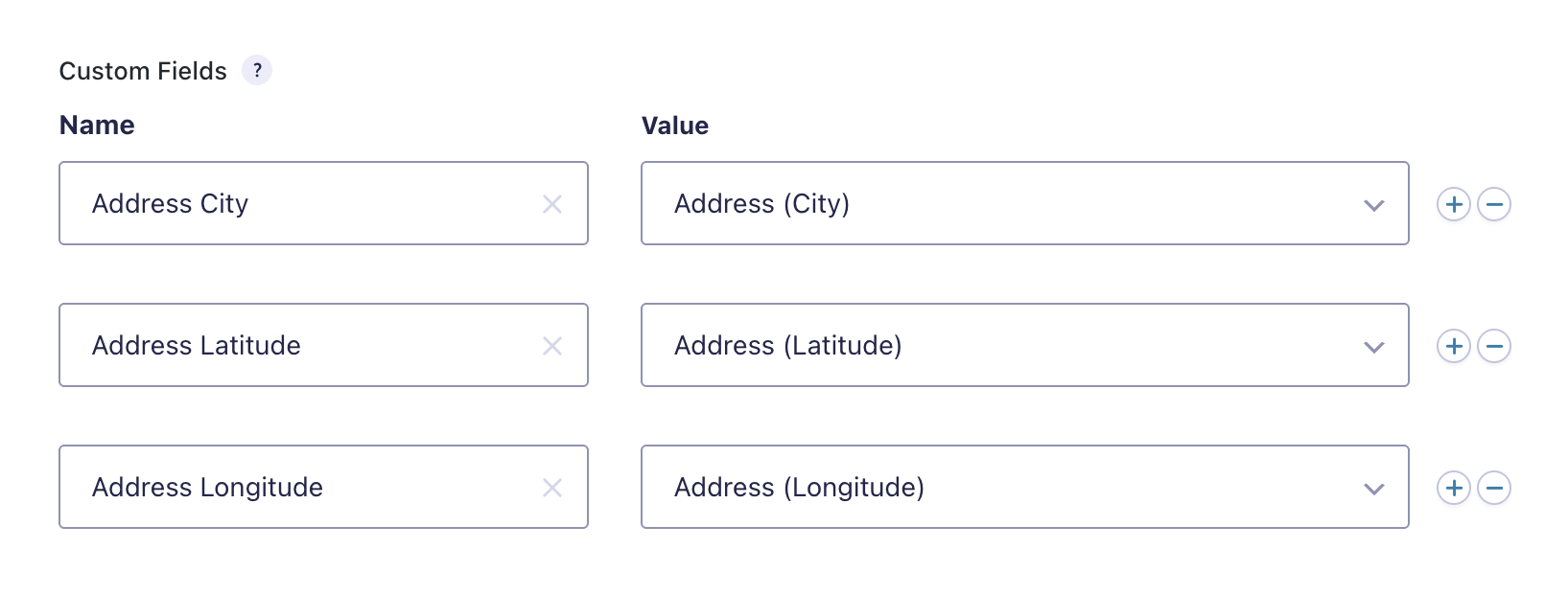 Address meta can be used by other plugins, like maps and search filters, to power all sorts of location features on your site. But for them to find the address meta easily, you’ll need to map it to a post’s custom field.