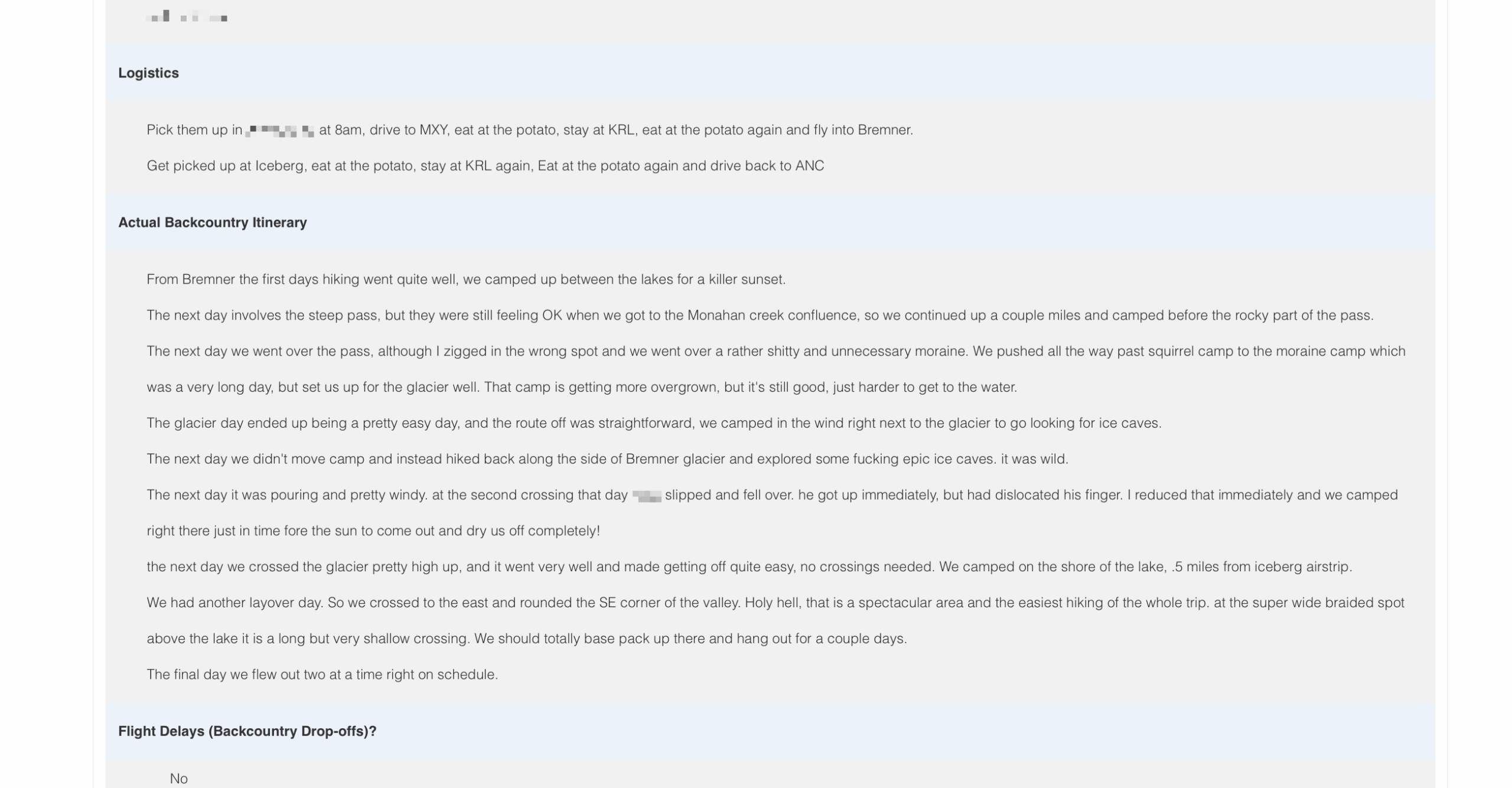 Reliable information is essential in the Alaskan wilderness, so all guides from Expeditions Alaska fill out a field report built with Gravity Forms. It serves to both keep records of the trip, like who they were taking, where they ate, or any injuries that happened, as well as to leave notes to future guides on the status of one of the trails or an amazing new hangout spot they came by.