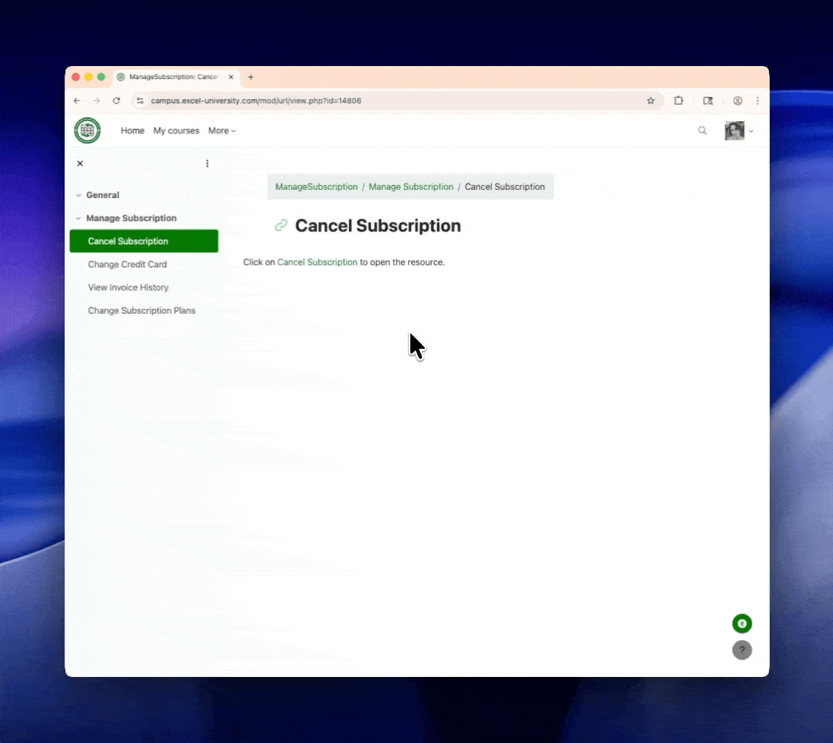 ?username=excelwizard&userid=123If they choose to continue with their cancellation, they are smoothly transitioned from their LMS account (WordPress) to where they manage their subscription (Recurly, an external service).