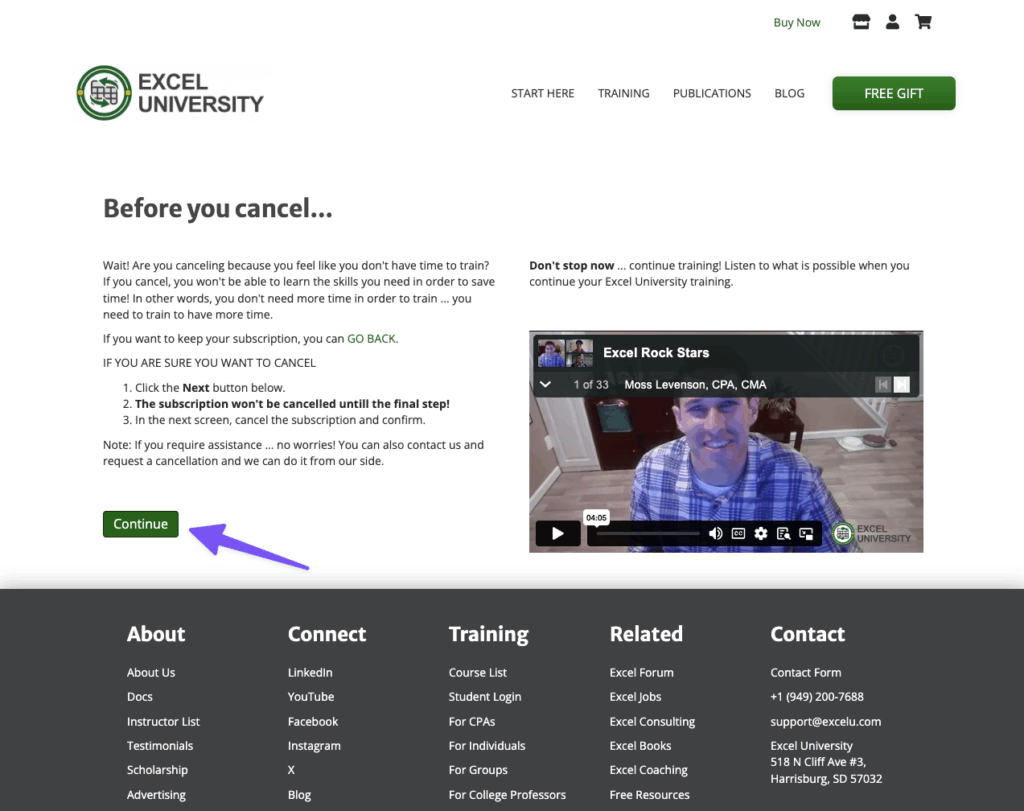 Since his middleware solution is still working well, Jeff is taking this transition one step at a time. His first test subject is his subscription cancellation flow, which starts with users clicking a link in their LMS account settings that redirects them to this page where a sneaky form lives.