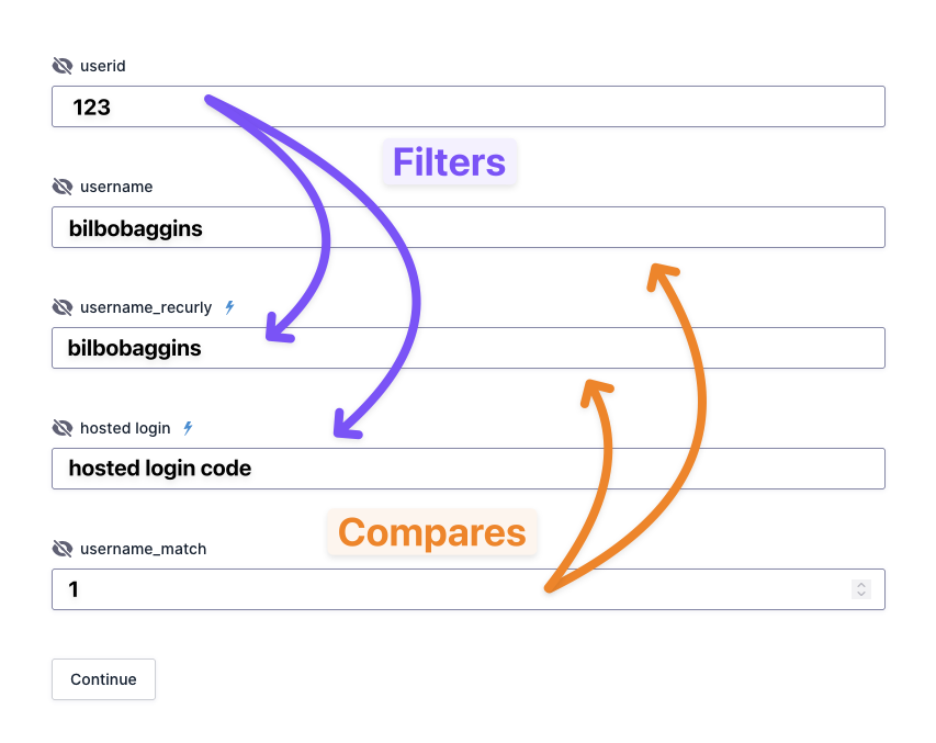 username_recurlyandhosted loginfields are populated with Recurly data via API Alchemist Populate Anything endpoint. Theuseridfield is used to filter which account to retrieve from Recurly. - The