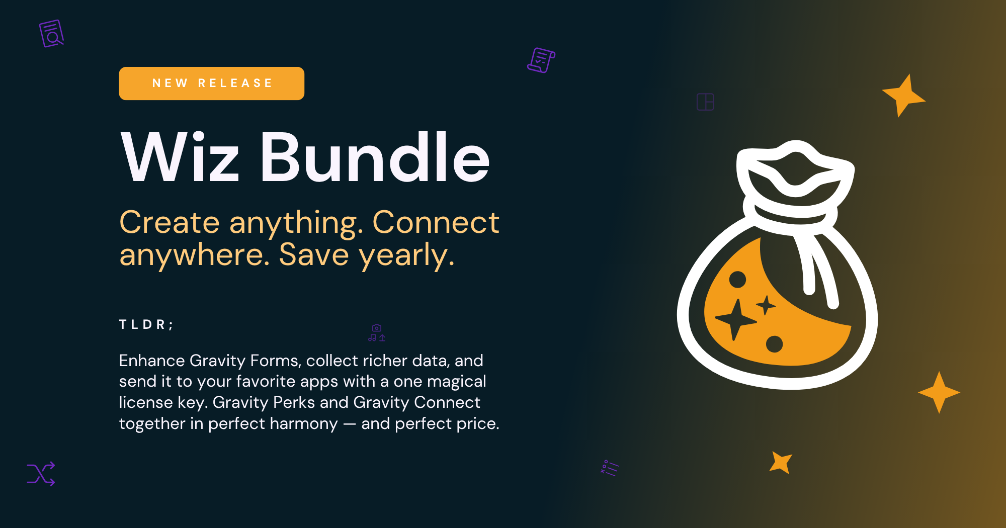Bundle up to enhance Gravity Forms, collect richer data, and send it to your favorite apps with a single license. Gravity Perks and Gravity Connect together in perfect harmony — and perfect price.
